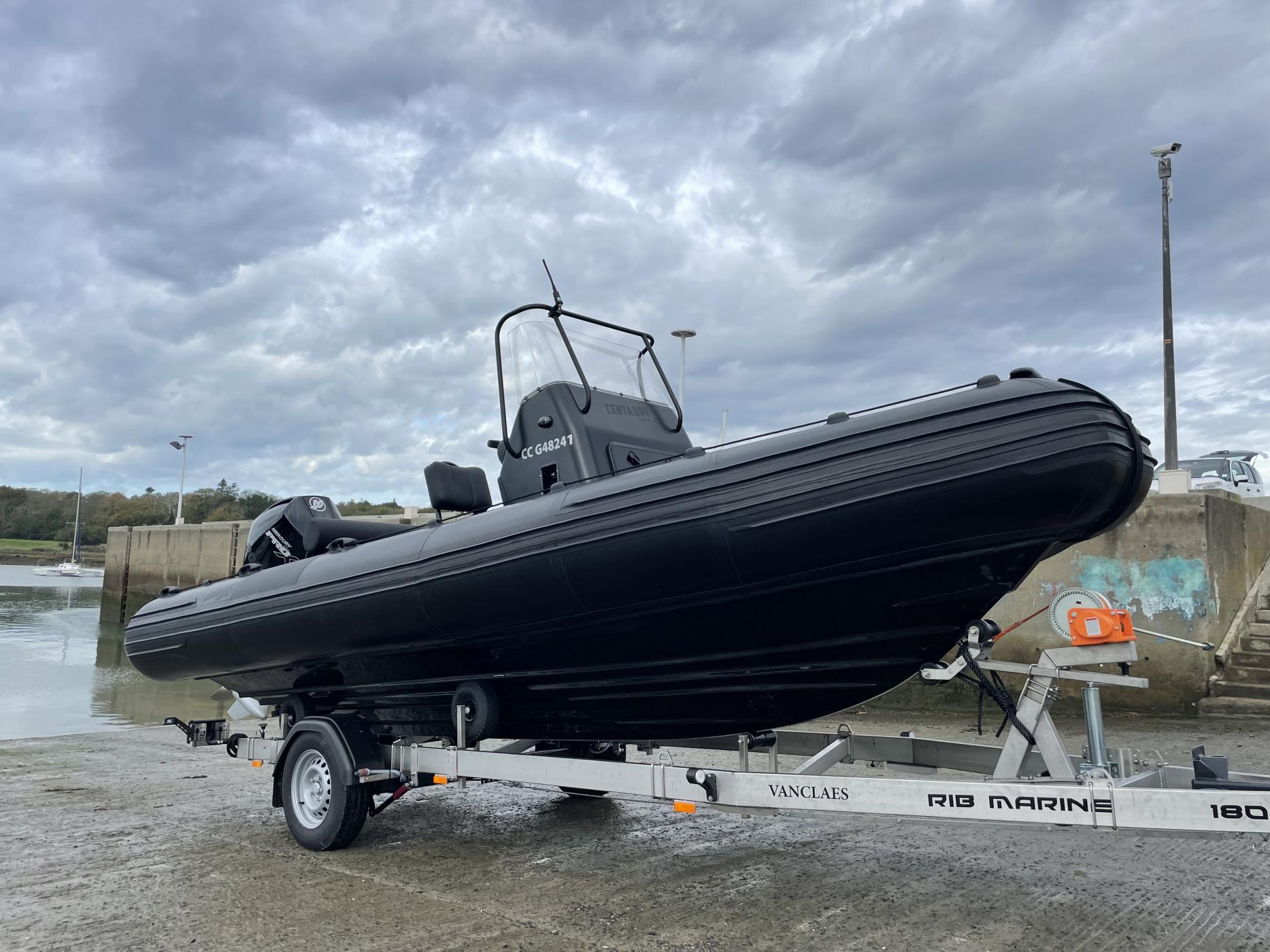 Centaure 6.20 V Pro Hypalon XL – Mercury 200 V8 Pro XS – 105 h – Mise en service octobre 2022 – Remorque Vanclaes inox