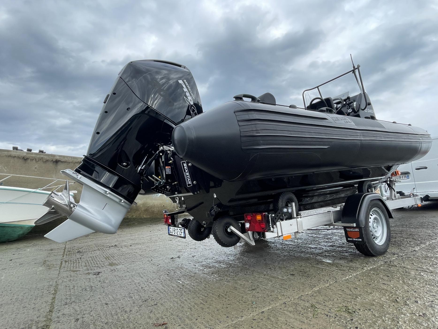 L’ensemble est vendu avec une remorque Vanclaes inox, robuste, qualitative et particulièrement appréciée pour sa résistance à la corrosion en milieu marin. -
