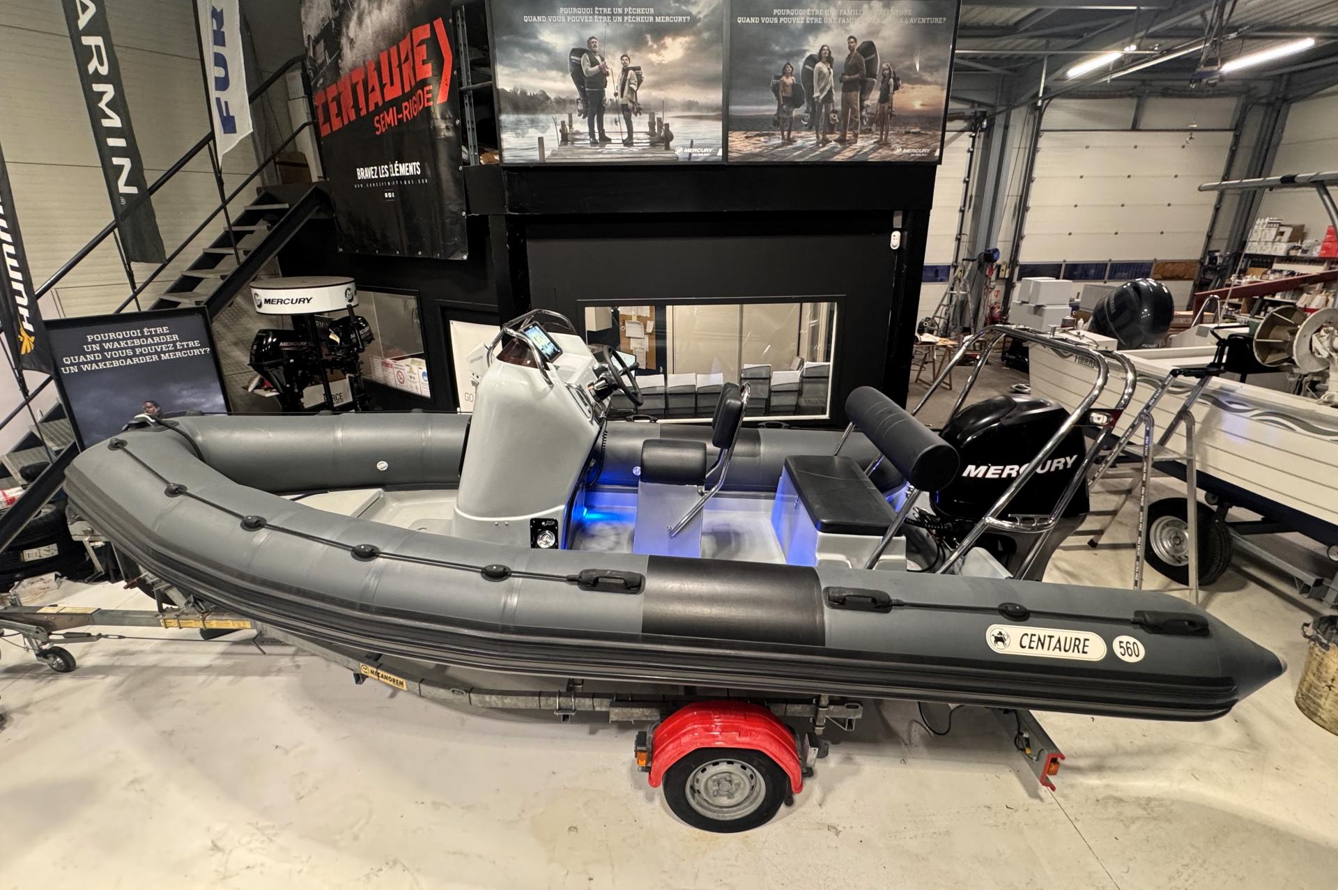 Centaure 5.60 reconditionné – 2,50 m de large – Mercury F100PT 100 ch (2012) – 256 h – Remorque incluse – Garantie 2 ans